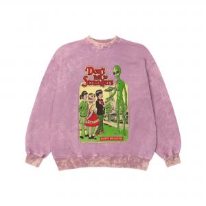Виварений оверсайз світшот пудрового кольору з принтом don't talk to strangers — грайливий мікс комфорту й іронії. М’який пудровий відтінок і виварена фактура створюють затишний вінтажний вайб, а кумедний інопланетянин із написом «don’t talk to strangers» додає гумору й легкості. Він ніби нагадує: не всім «чужим» варто довіряти, але стиль і настрій завжди можна носити з собою. Ідеальний для тих, хто любить поєднувати комфорт, креатив і трохи космічних жартів.