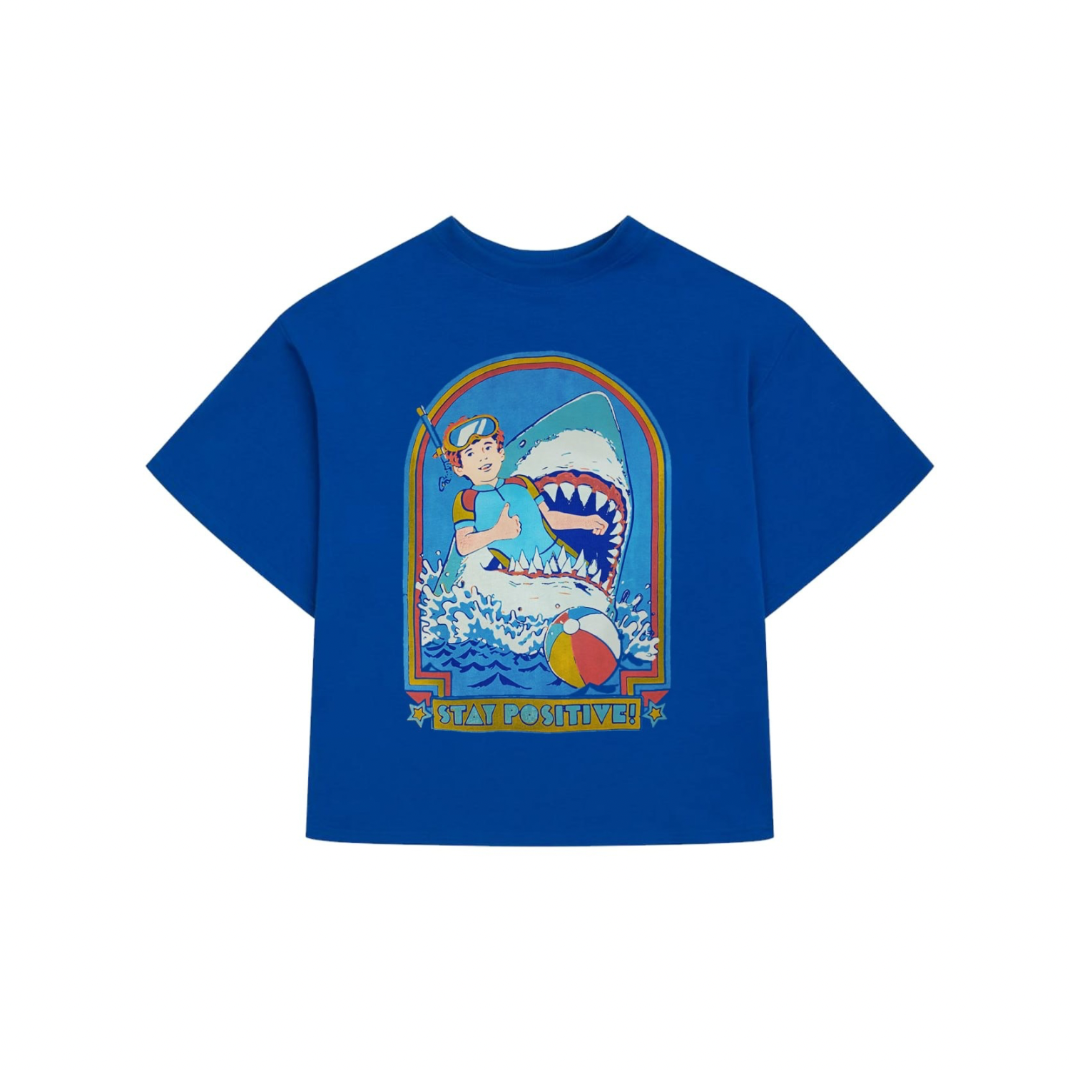 Синя оверсайз футболка Stay Positive — іронія, яку видно здалеку. Контрастний принт з акулою, що “вирішує питання” по-своєму, і напис Stay Positive додають образу чорного гумору та характеру. Вільний крій забезпечує комфорт і той самий effortless стиль на кожен день.